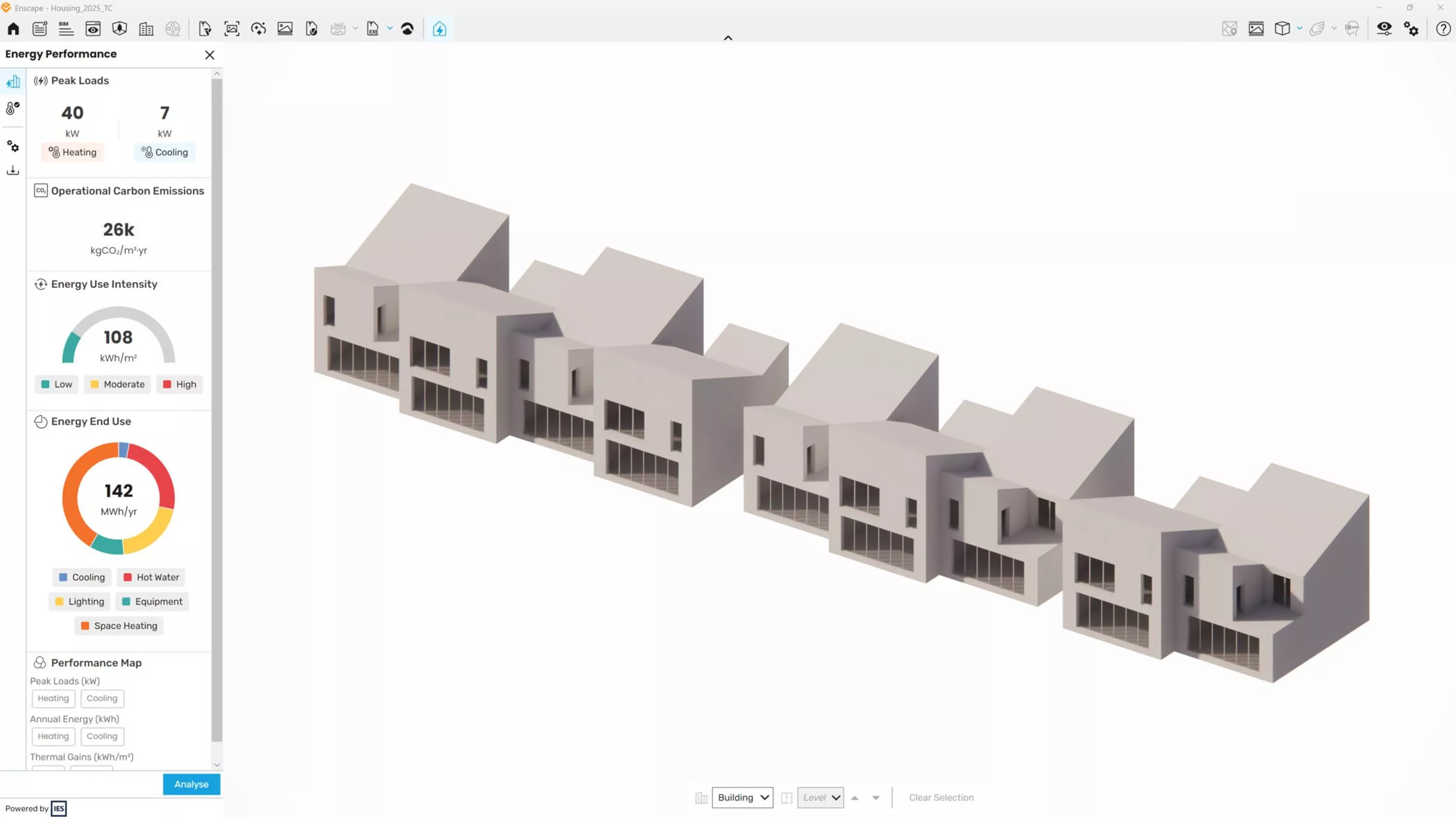 Een comfortabel ontwerp is vaak ook een efficiënter ontwerp. Door thermisch comfort te onderzoeken, krijg je ook meer inzicht in de energieprestaties van een ruimte. Enscape Impact houdt immers rekening met bezetting, interne warmtelasten en gebruikspatronen voor elk type ruimte.