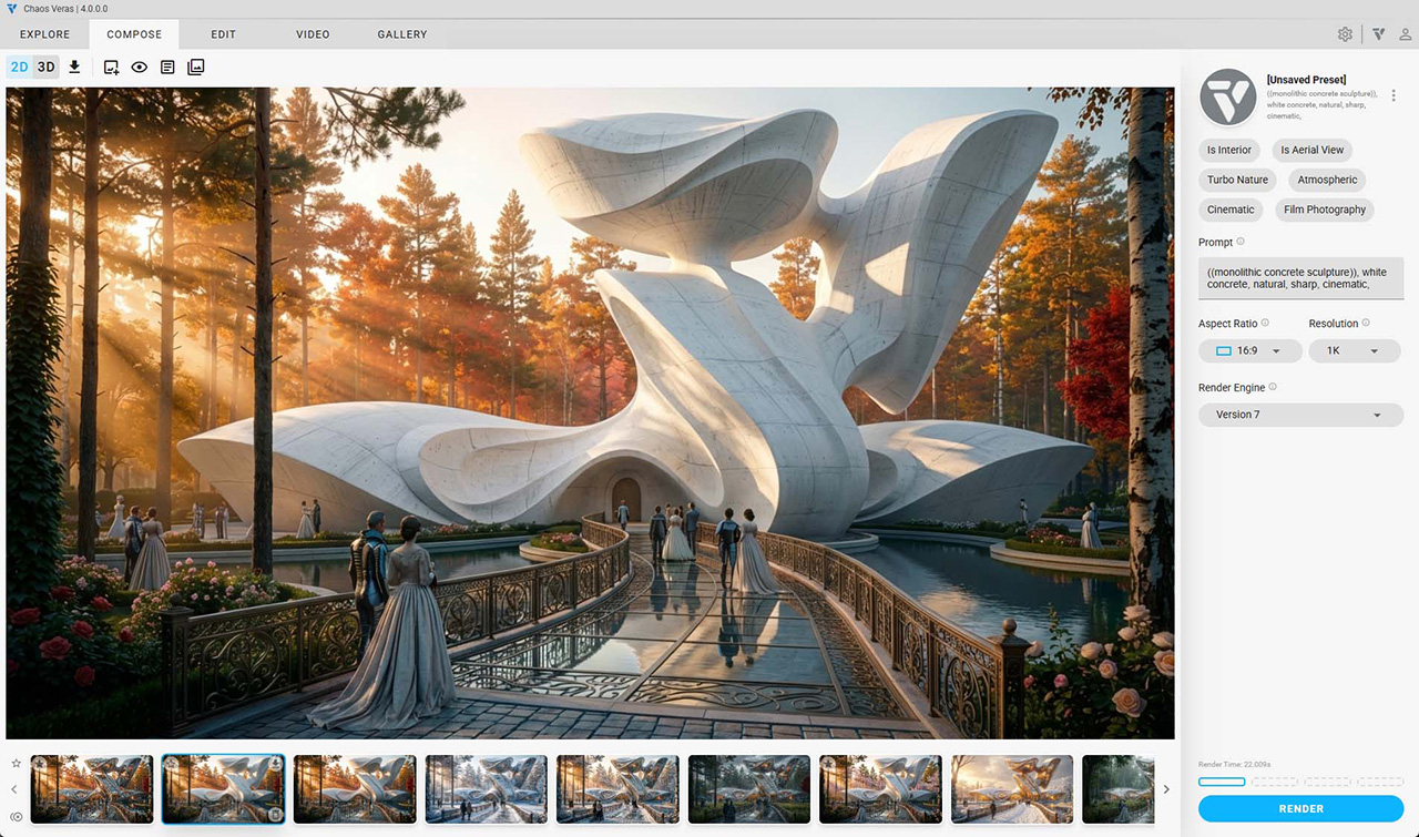 La dernière version de Veras, l'outil d'idéation et de visualisation alimenté par l'IA de Chaos destiné aux architectes, est désormais disponible. Parmi les points forts de Veras 4.0, citons le Render Engine 7, alimenté par Nano Banana Pro, la référence d'image en tant qu'entrée, le mode Gallery, les préréglages vidéo, et bien plus encore.