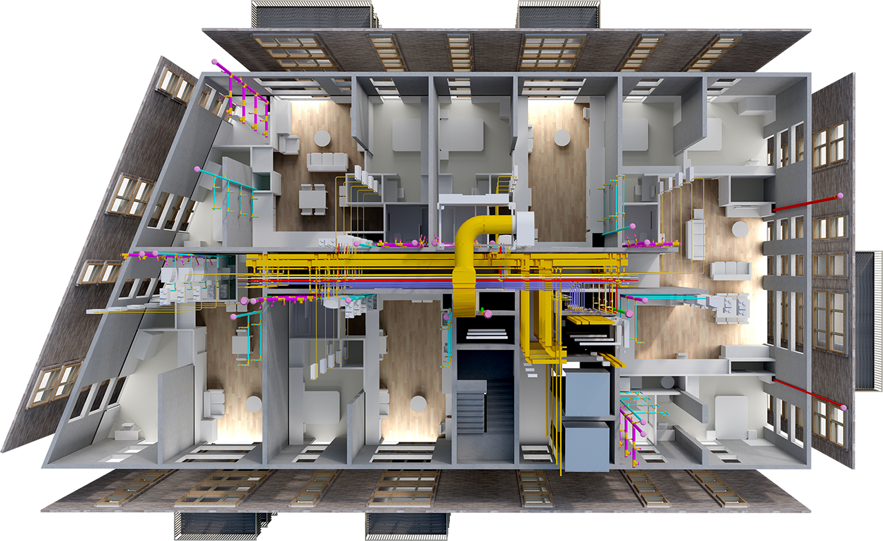 Met Building Information Modeling of BIM creëer je een digitale versie van een gebouw of infrastructuur die naast geometrie ook informatie gekoppeld aan die geometrie bevat. In plaats van tientallen of zelfs honderden losse tekeningen, zorgt BIM voor één gecoördineerd model dat je kan gebruiken doorheen je volledige project. Uit dat model kan je steeds tekeningen genereren, met de zekerheid dat je over de meest up-to-date versie beschikt.