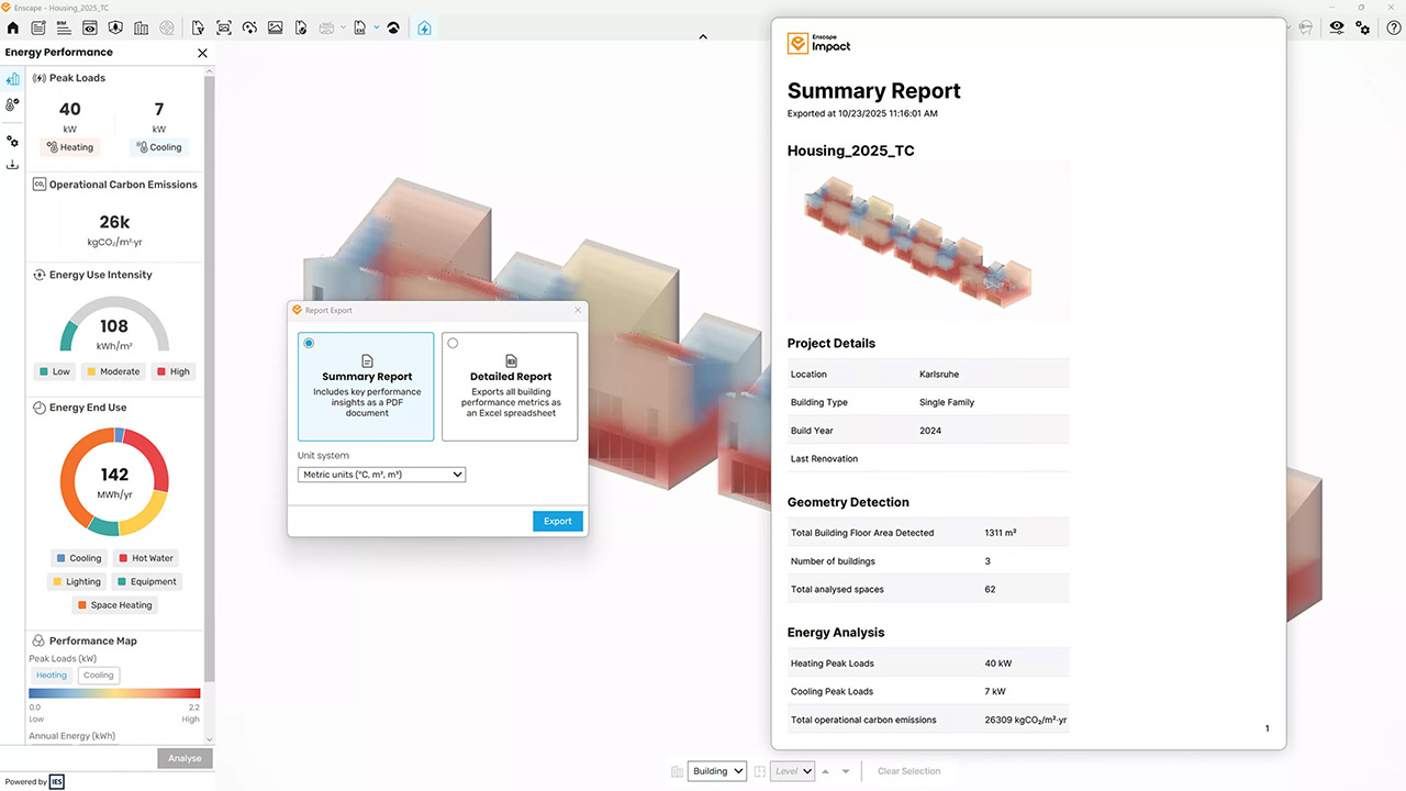 Rapports de performance exportables dans Enscape Impact