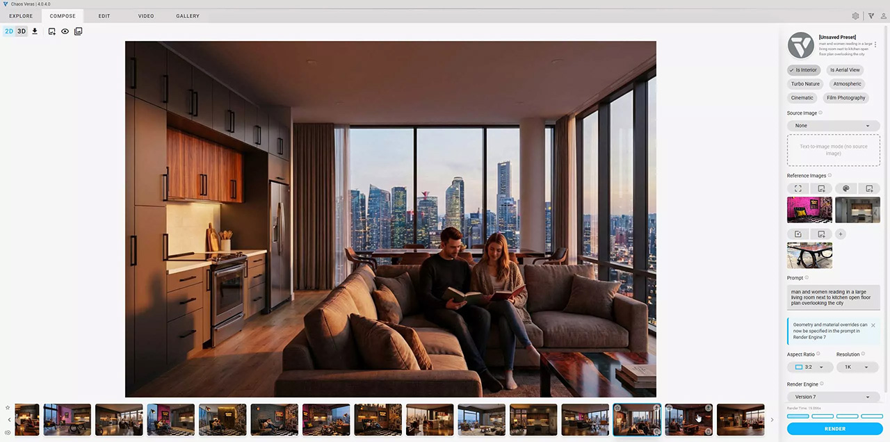 La dernière version de Veras, l'outil d'idéation et de visualisation alimenté par l'IA de Chaos destiné aux architectes, est désormais disponible. Parmi les points forts de Veras 4.0, citons le Render Engine 7, alimenté par Nano Banana Pro, la référence d'image en tant qu'entrée, le mode Gallery, les préréglages vidéo, et bien plus encore.
