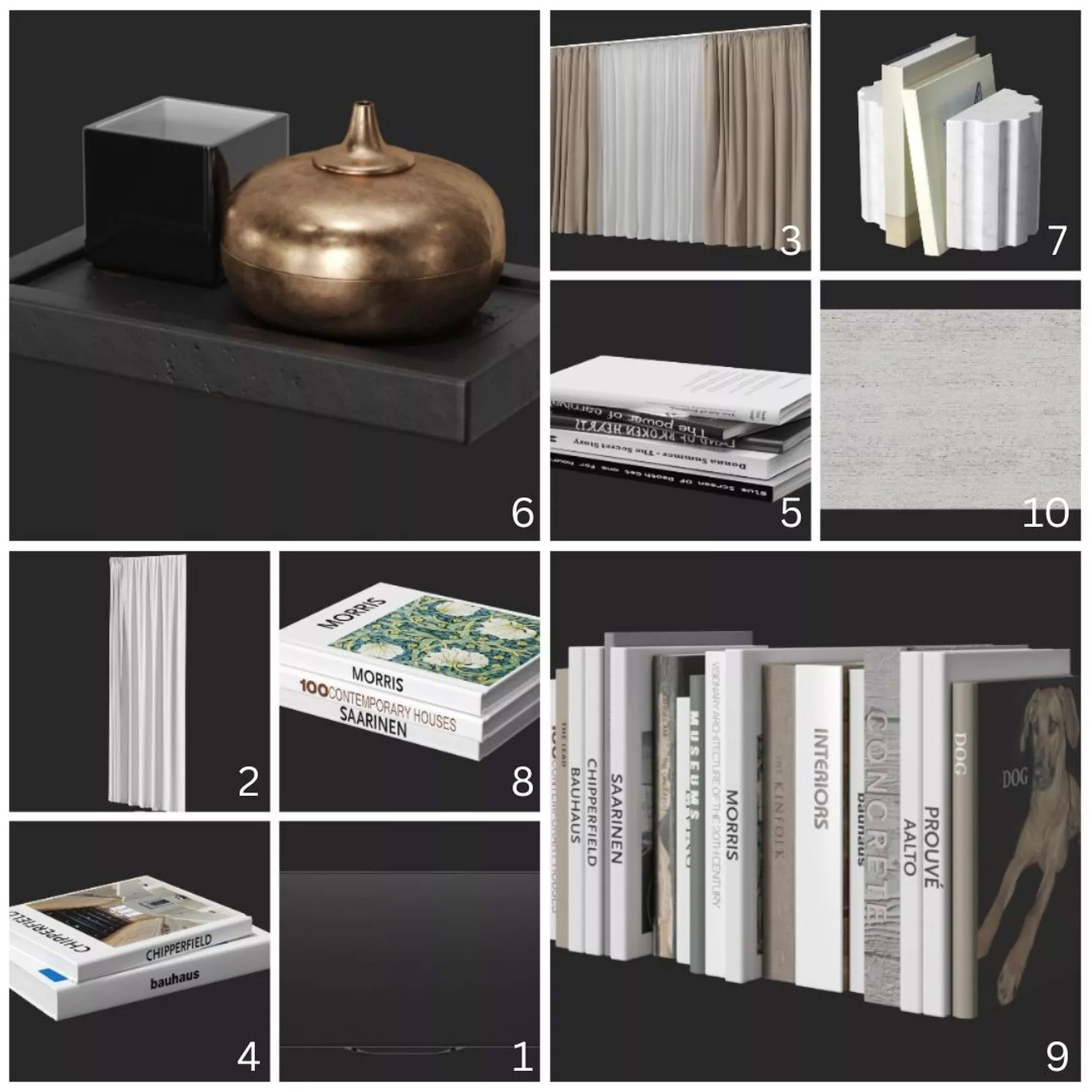 De eerste plaats gaat naar een TV, met een stevige voorsprong op de rest van het podium, dat bevolkt wordt door twee gordijnen. Op plek zes en tien vinden we respectievelijk een decoratief item voor op de koffietafel en een mat. De rest van de top 10 bestaat uit boeken - ideaal om interieurscènes wat gezelliger te maken. Buiten de top 10 komen we nog meer boeken, elektronica, decoratie en apparaten tegen, met een opvallende gast op plek 20: een pluchen puppy. Een mooi voorbeeld van een klein detail dat een interieur meteen een pak warmer en persoonlijker maakt.