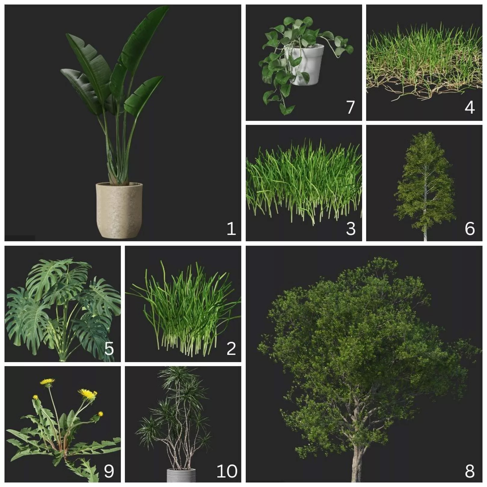 Op de eerste plek vinden we een kamerplant, gevolgd door drie soorten gras. Verder in de top 10: nog twee kamerplanten, twee bomen, een gatenplant en … een paardenbloem! Niets maakt een tuin of landschap realistischer dan een beetje onkruid, niet waar?