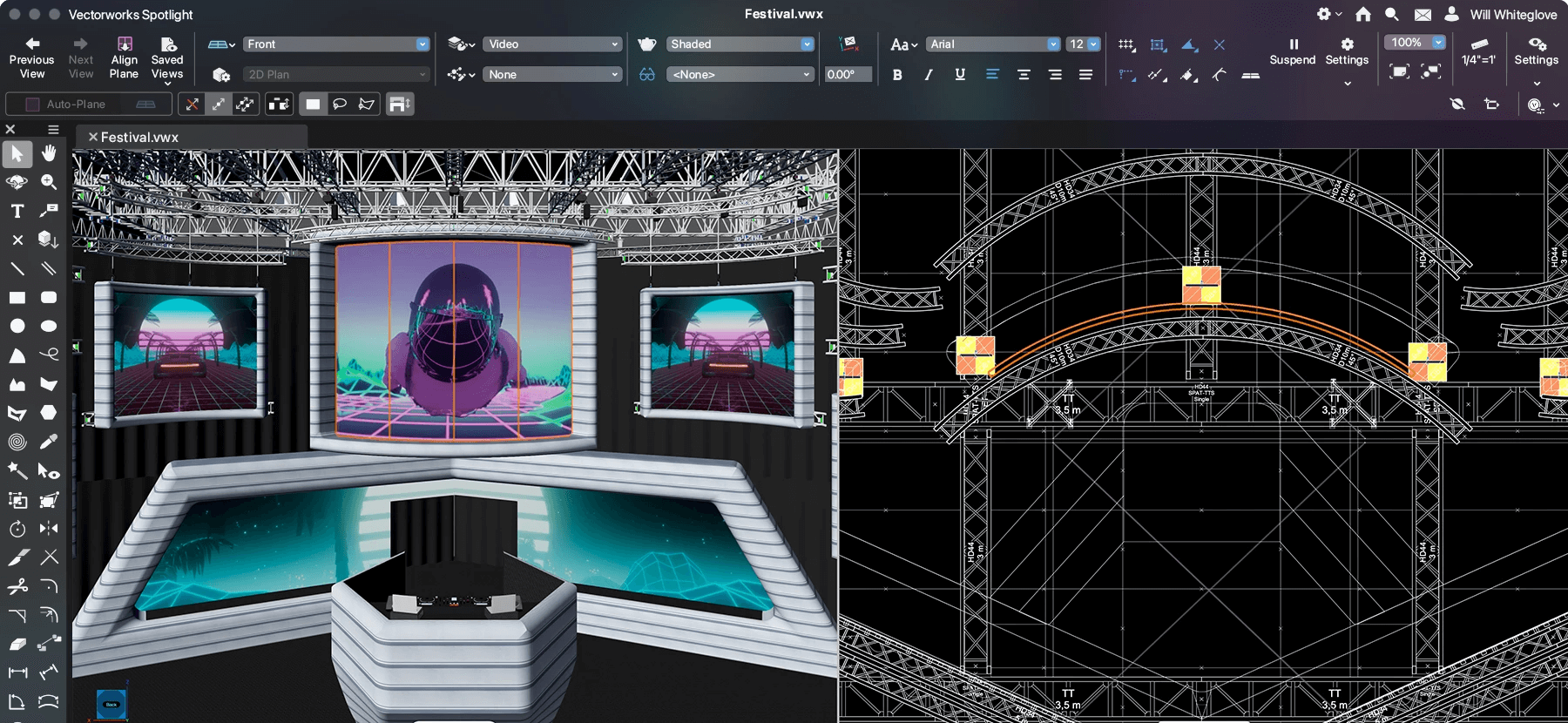 Ciesz się inteligentniejszą i bardziej intuicyjną pracą w Vectorworks. Szybko odnajduj pomocne treści i potrzebne zasoby dzięki globalnej funkcji Wyszukaj w Vectorworks, dostosowuj panele widoku za pomocą konfigurowalnych ustawień widoku wielopanelowego i wyświetlaj realistyczny podgląd obiektów w czasie rzeczywistym. Osiągaj więcej i pobudzaj swoją kreatywność dzięki przestrzeni roboczej, która dostosowuje się do Ciebie.